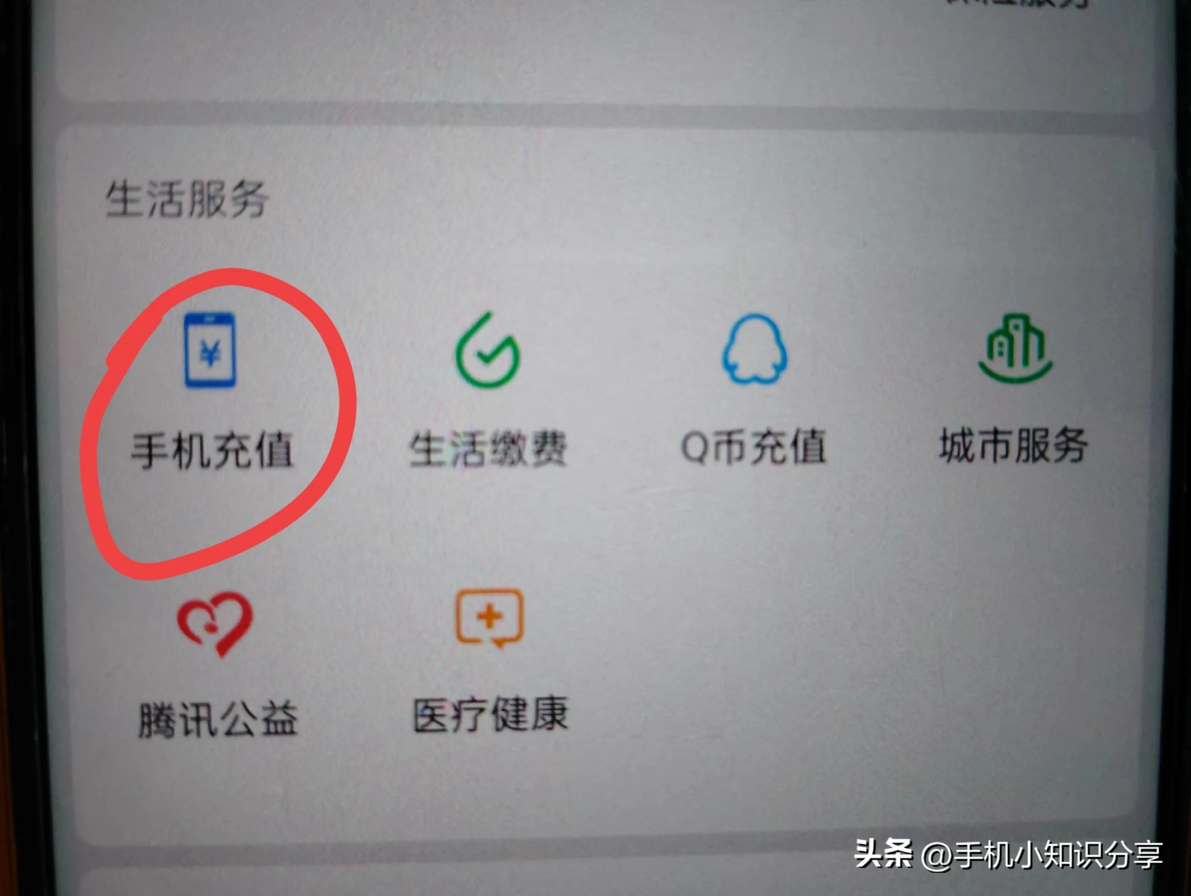 进入服务后,点击“手机充值”。(如上图所示)