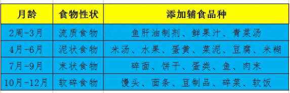 说明:1.口诀中数字均为月,其中“二”为2周时添加鱼肝油,防止小儿佝偻病;2.“粥”指的是米汤,不带米。