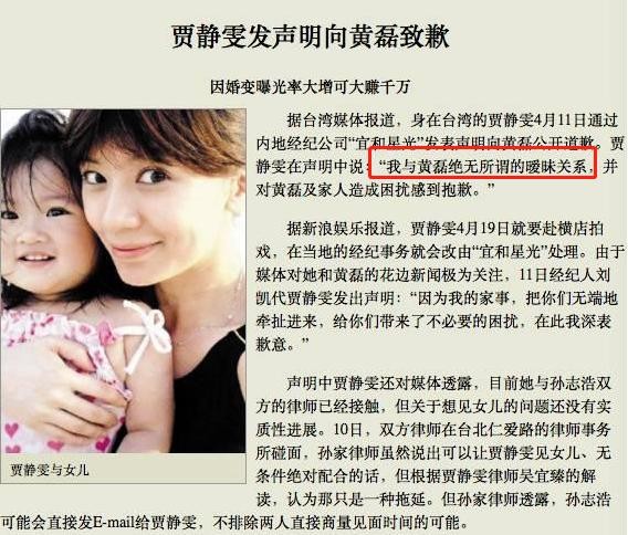 后来贾静雯也对这件事情做出了解释,并公开对黄磊道歉,说当时给黄磊发短信只是为了气孙志浩。
