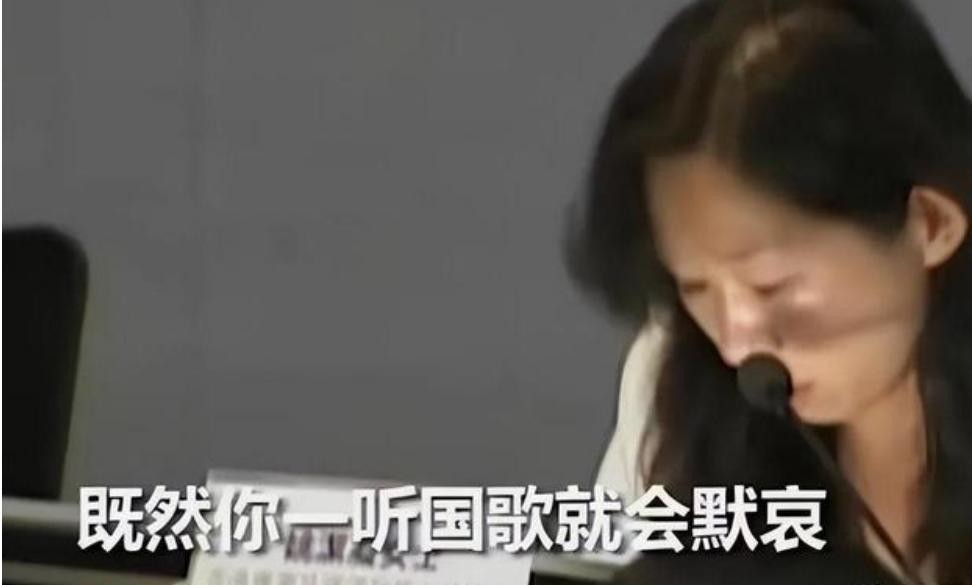 即便会上表示不能任意请个别人士再进行补充,可张倩盈瞅准时机立即从座位上站起来自顾自发言,她口出狂言,说出了“听到国歌就想呕”的发言。