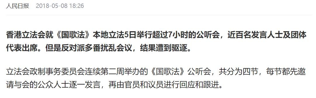 那年,香港立法会就《国歌法》举行了一场7小时的公听会,出席的有近百名发言人。