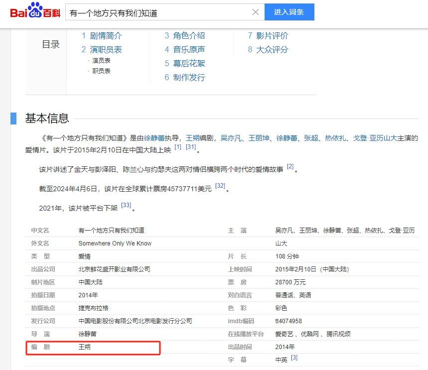 2015年,徐静蕾的作品《有一个地方只有我们知道》公开宣传时,王朔已然成为他的前任,但这部片子的编剧名单里,却赫然写着“王朔”两个大字。
