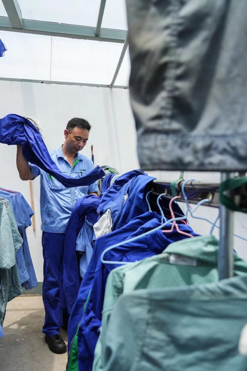 车间工人们告诉记者,企业工会新建的洗衣房是大家尤为满意的一项实事工程。这处洗衣房就位于车间不远处,不仅有洗衣机,还有烘干机,设置了专人为员工们提供服务。一位前来洗衣房取衣服的工人师傅告诉记者,夏季高温天在车间里干活,不出几小时衣服就会湿透,“以往需要把脏衣服带回宿舍或者带回家洗,工会在征求大家意见后改建了这间洗衣房,现在工装随时都能洗、还能烘干,方便多了。”