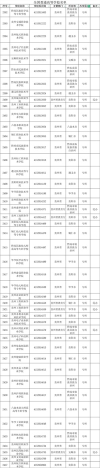 贵州的普通和职业大学(75所)