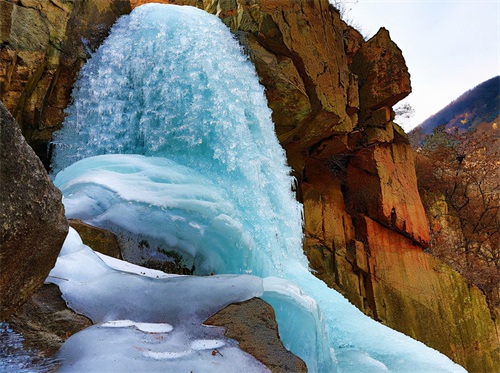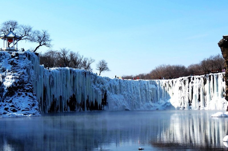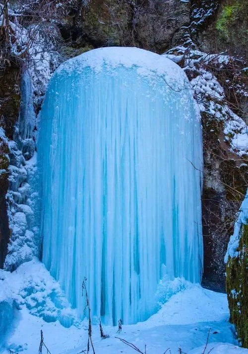 它根据设计要求在山前或河中用木杆搭成骨架,再挂草帘、拴草绳或者绑树枝,然后在零下20摄氏度以下的低温条件下用清水慢慢喷浇之。