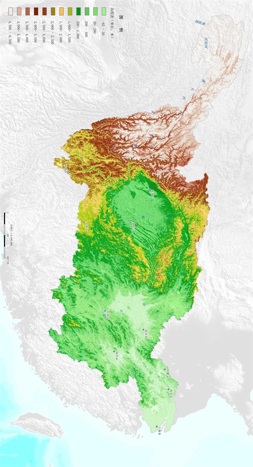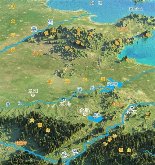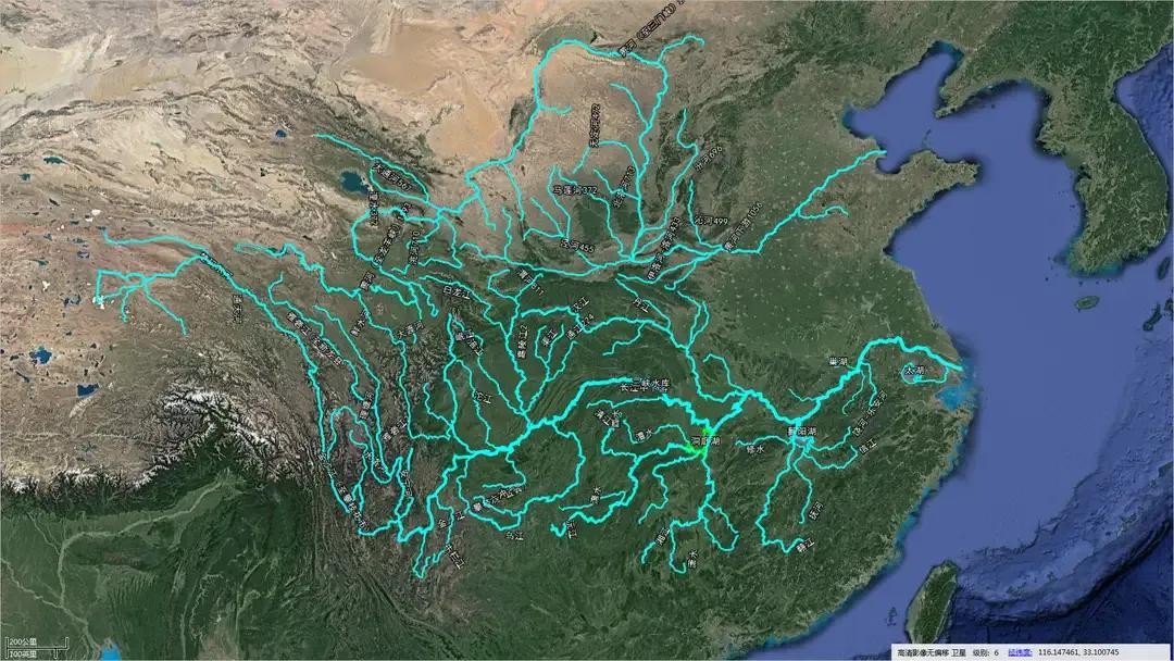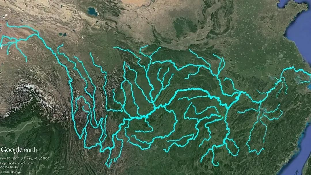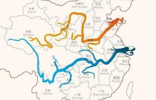 图5,中国腹地两条水龙(黄龙和青龙)。当然也有山龙,历朝历代的都城都会建立在龙脉上,比如洛阳、长安、北京、南京、开封、杭州、成都、武昌、武昌。
