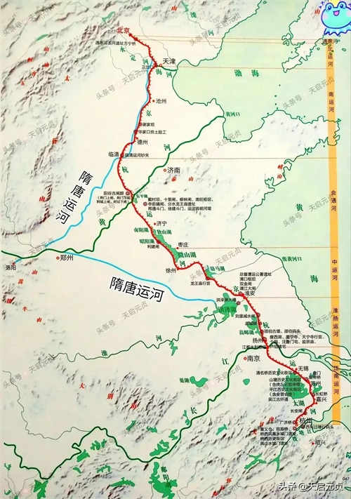 东西大动脉是长江黄金水道,南北大动脉是京杭大运河。