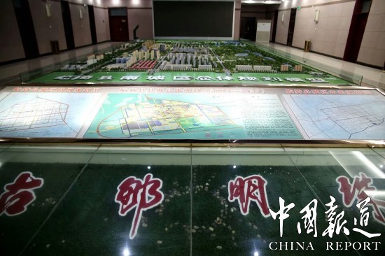图为:涑水公园内展厅临猗县南城区总体规划模型