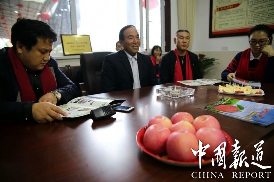图为:“全国劳动模范”临猗县北辛乡卓逸村党支部书记、村委会主任,王万保果品种植销售专业合作社理事长王万保与山西地区百度吧主们亲切交流