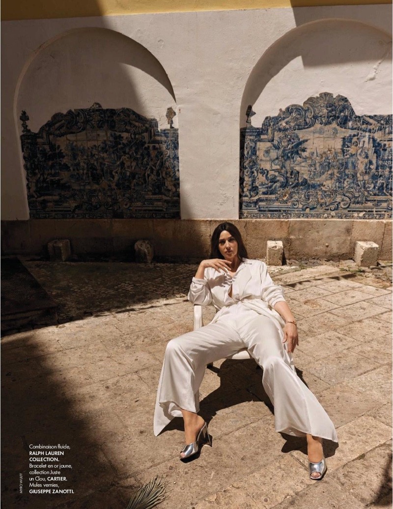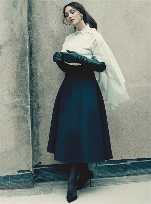 莫妮卡尝试了简约但足够女性化的服装来拍摄照片,其中既有年轻品牌的衣服,也有奢侈品牌的衣服,例如乔治阿玛尼皮衣。在一次坦诚的采访中,这位明星承认不害怕自然衰老,并认为女性可以自己选择这个过程在她们的生活中应该如何发生。