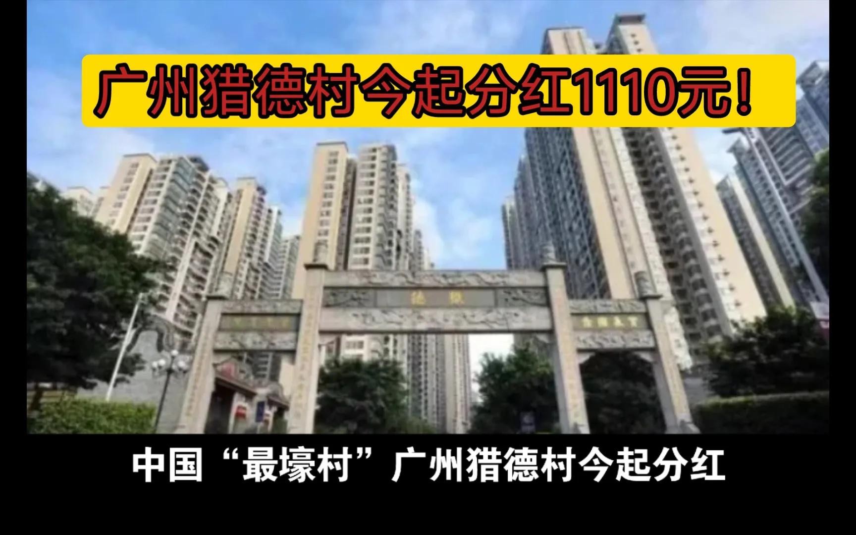 一月八日,一则广州市天河区猎德村,猎德股份经济合作社的分红通知,村民每股最多可分得1110元,在网络上流传引发热议。
