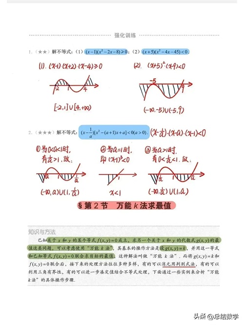 不等式是数学中的重要概念,广泛应用于各个领域。解决不等式问题的方法多种多样。将介绍五种常见且有效的:穿针引线法解高次不等式,万能K法求最值,三元均值不等式,柯西不等式,以及二维形式的权方和不等式。