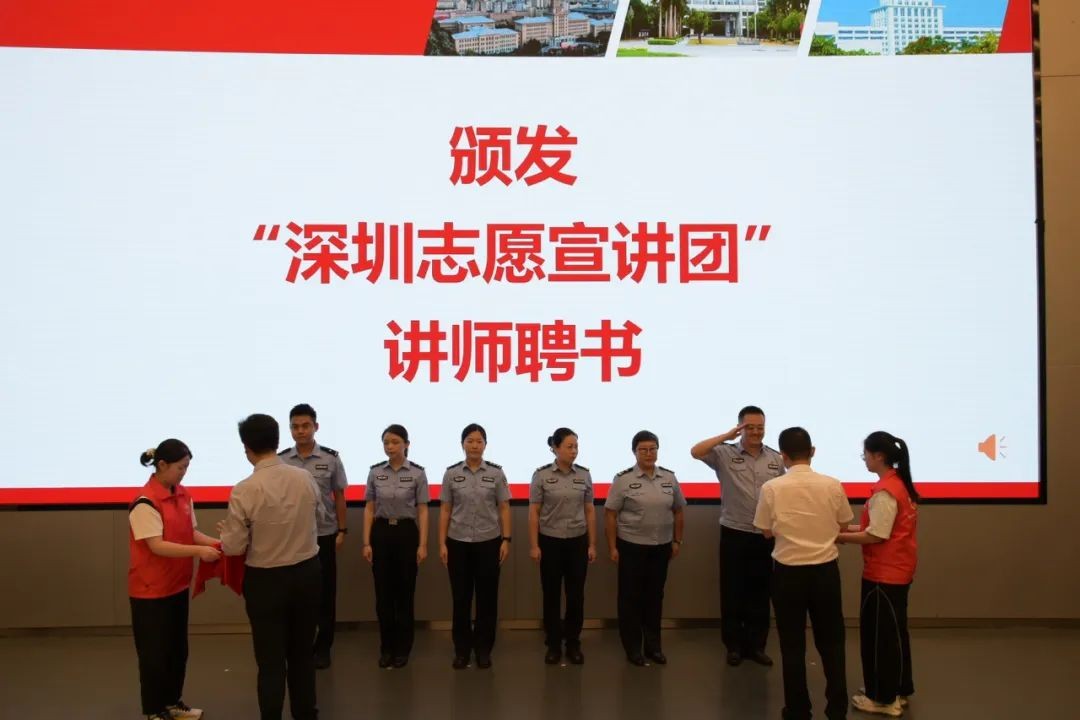 为表彰宣讲团在禁毒普法领域的突出贡献,深圳市义工联党委书记刘林波向簕杜鹃禁毒宣讲团颁发“深圳市司法局第一强制隔离戒毒所志愿服务队”证书。同时,市司法局、哈工大(深圳)领导为6位宣讲团骨干成员颁发“深圳志愿宣讲团”讲师聘书,肯定他们在禁毒普法中的专业能力与社会责任感。