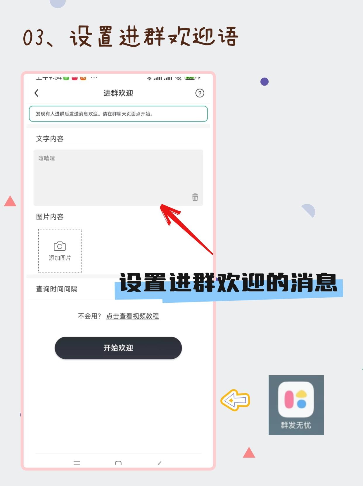 顺便给大家讲一下‘进群欢迎’功能,可以在有新人进群的时候自动发消息,对群主来说是个非常实用的功能