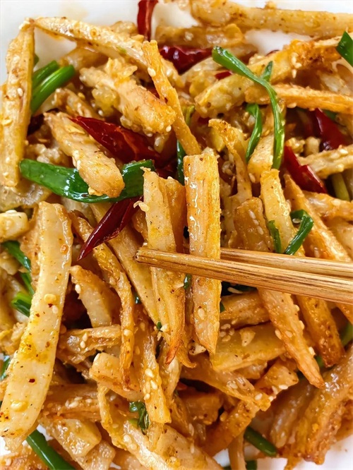 干煸藕丝是一道美味的中式菜肴,以其独特的口感和丰富的营养价值受到许多人的喜爱。下面是干煸藕丝的制作方法: