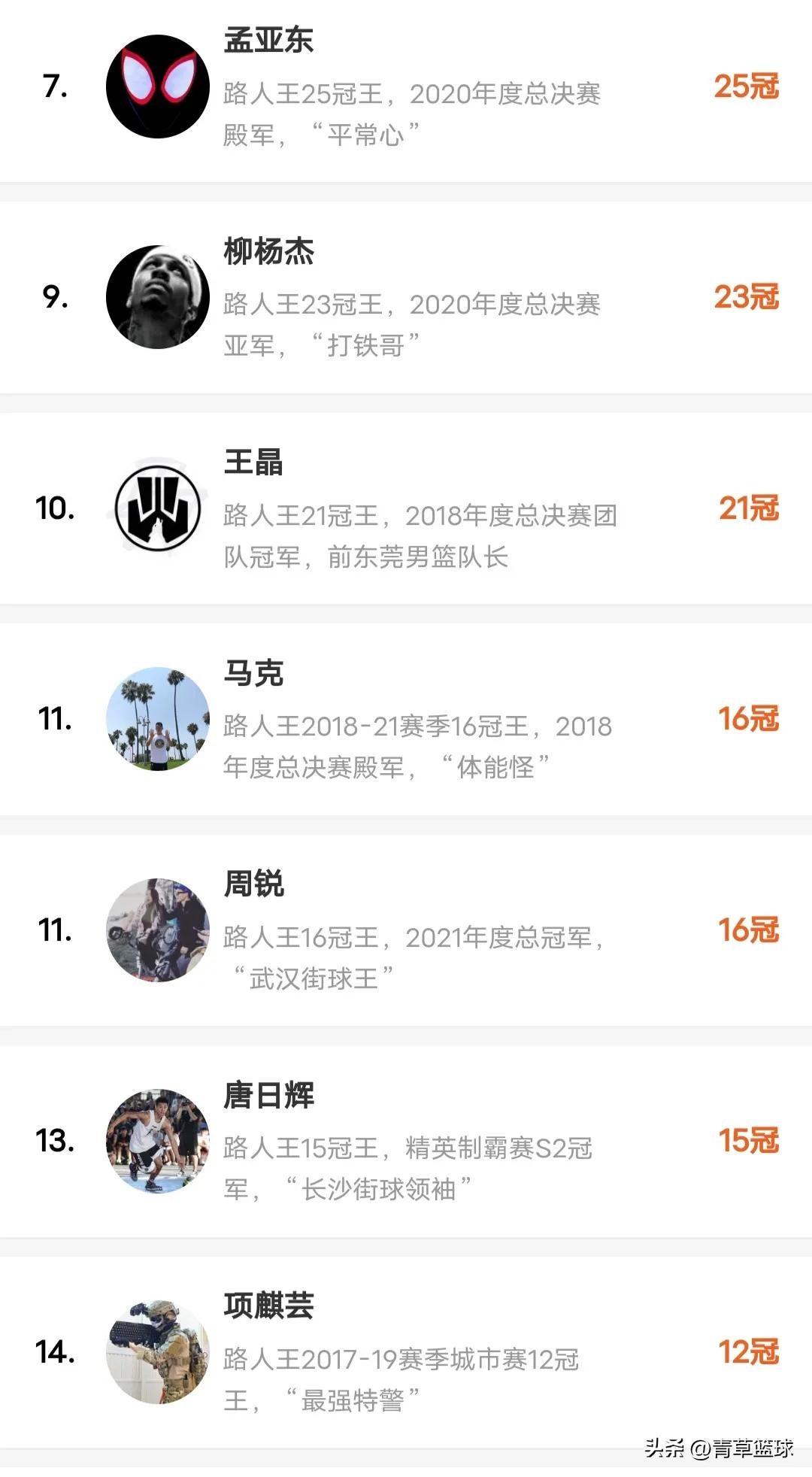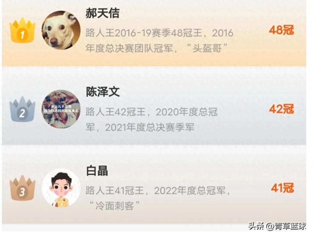 路人王冠军数排行榜,头盔哥48冠,军哥7冠。