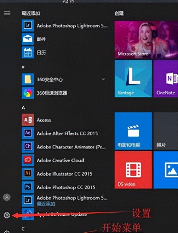 1、点击左下角“开始菜单”,点击“设置”