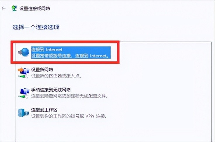 4、选择第一项“连接到Internet”,点击下一步