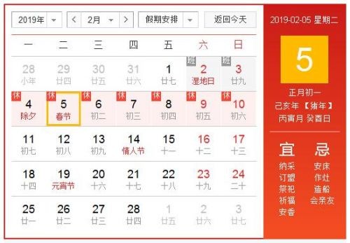 2019年春节放假时间安排:2月4日至2月10日