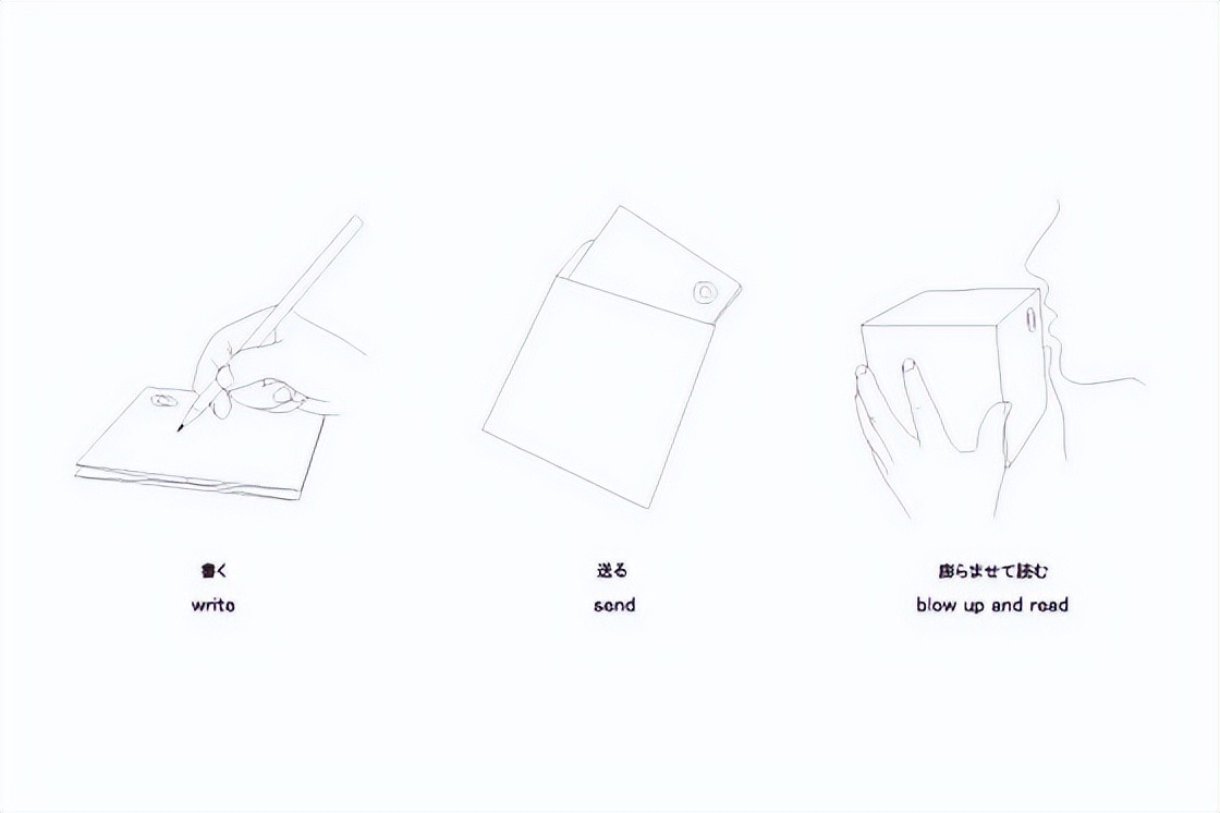 立方体字母设计基于传统的日本折纸,书写纸的形状像一个立方体,可以被吹成一个气球。