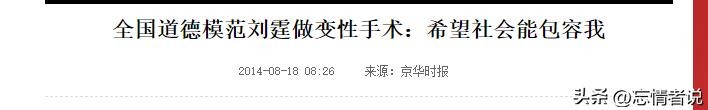 信息来源:京华时报 2014-08-18 全国道德模范刘霆做变性手术:希望社会能包容我