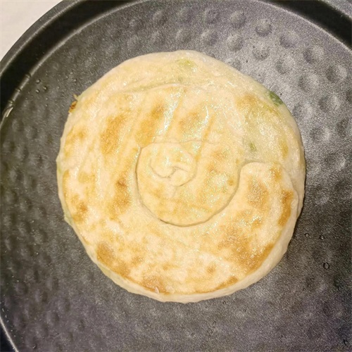 然后再卷成一个葱花饼,用擀面杖再擀饼的形状自己家吃,不一定非得圆圆的,能吃就行。