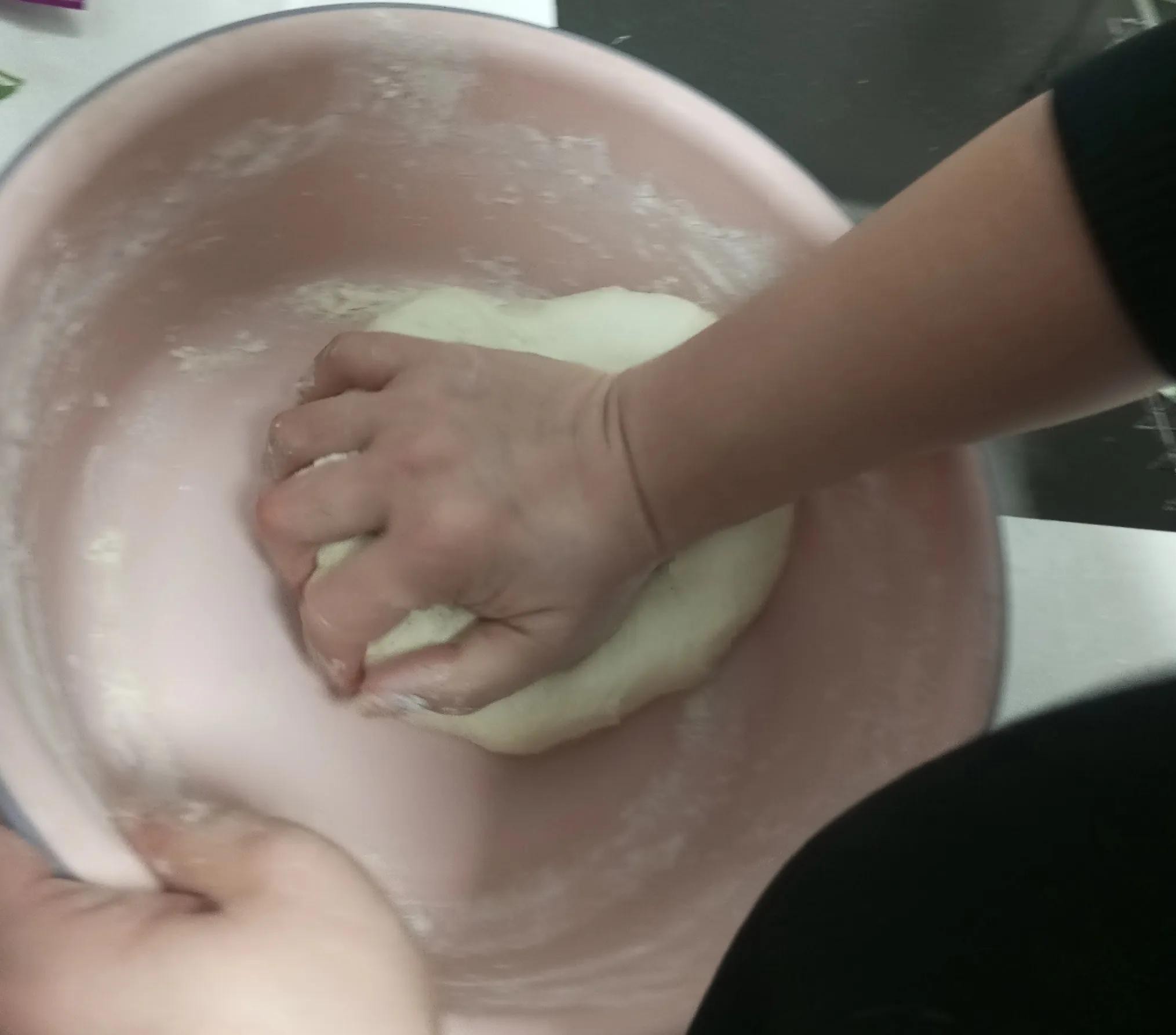 这一步是关键,之前第一次做一次加了好多水,面全粘手上了,然后我又不断加面加水,最后弄了好多。