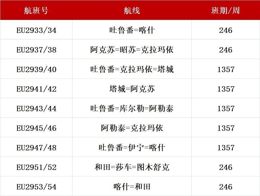 自2023年6月初以来,成都航空已成功开通阿拉尔至石河子(经停伊宁)、库尔勒、和田等航线。