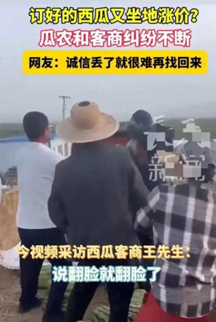 几周前,宁夏的瓜农与客商之间的西瓜批发价格经过友好协商达成了一致。然而,没过多久,瓜农接连三次上调价格,这突如其来的变化让原本建立在信任基础上的交易关系瞬间紧张。客商感到无奈与愤怒,他们认为瓜农的行为完全违背了诚信与契约精神。