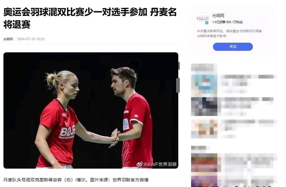 7月17日,那个日子,对于丹麦羽毛球界来说,无疑是灰暗的。马蒂亚斯·克里斯蒂安森,那个在赛场上风驰电掣的猛将,突然宣布退出巴黎奥运会。更让人揪心的是,他的黄金搭档也紧随其后,选择了同样的道路。这一对曾经的无敌组合,就这样遗憾地告别了他们的奥运梦。