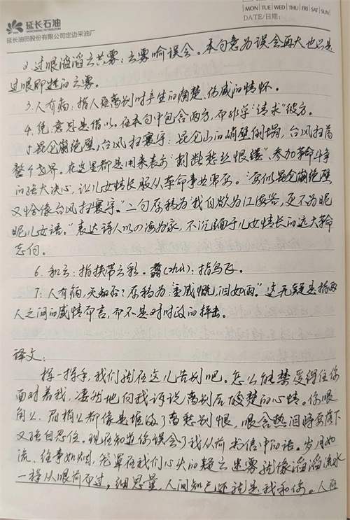 3、人有病,天知否:“病”指人在离别时产生的痛楚、伤感的情怀。原稿为:“重感慨,泪如雨。”这无疑是指两人之间的感情而言,而不是对时政的抨击。