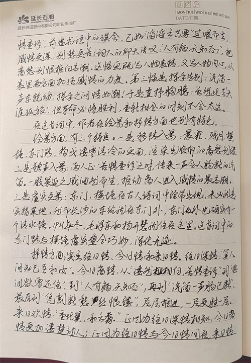 抒情方面,突出往日情、今日情和往日情。往日深情:“算人间知己吾和汝”。今日离情:从“凄然相向,苦情重诉”到“热泪欲零还住”,到“人有病,天知否”,再到“汽笛一声肠已断”,最后到“凭割断愁丝恨缕”,层层推进,一层更胜一层。来日欢情:“重比翼,和云翥。”正因为往日深情相知,今日离情更加凄楚动人;正因为往日情与今日情同在,来日情也就有了坚实的基础。