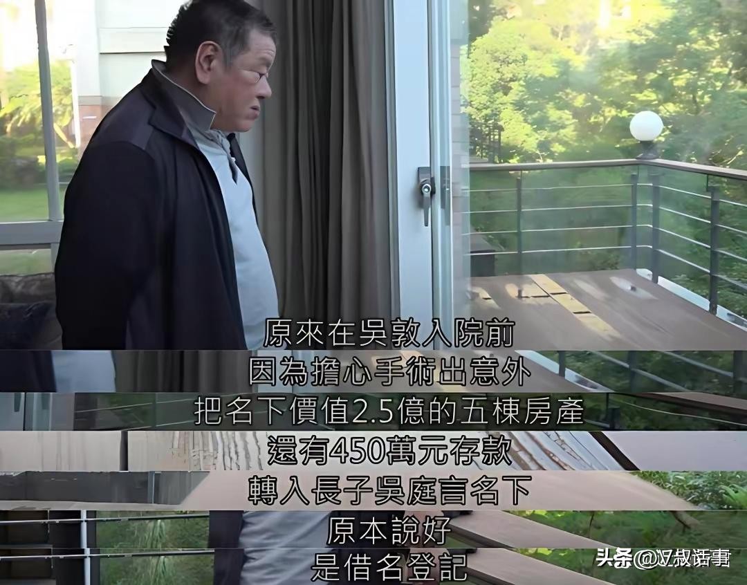 2012年,大病一场的吴敦身体日渐消瘦,体重直线下降,在准备做手术前,他还把自己数亿的资产以特殊的法律方式“暂时登记”在大儿子吴庭言的名下,但让他万万没有想到的是自己的儿子却拿着所有财产和女友前往国外后音信全无。