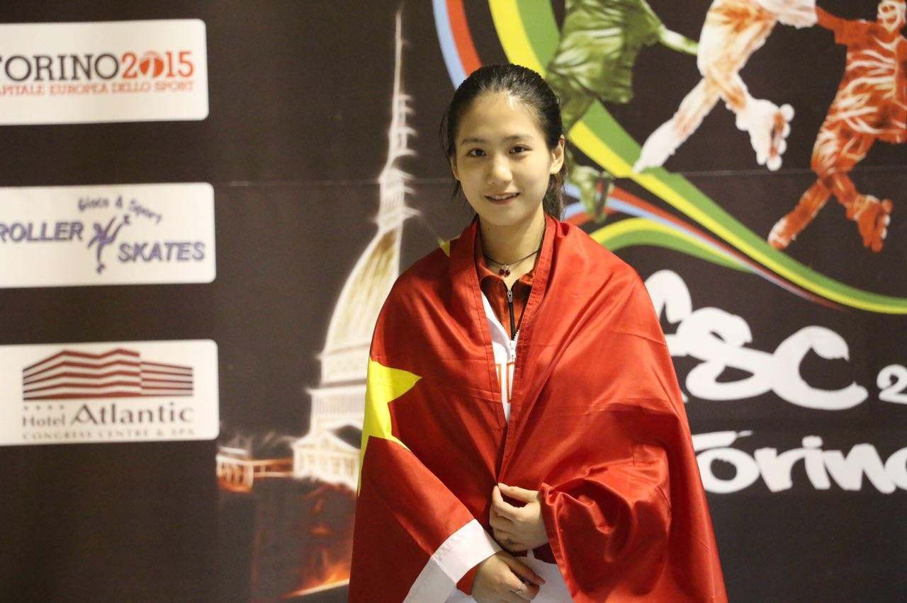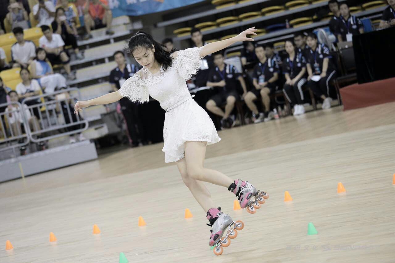 她那个组别的自由式轮滑比赛,只要她参加了的,就是冠军。自由式的不败神话,估计拿奖牌都拿腻了。