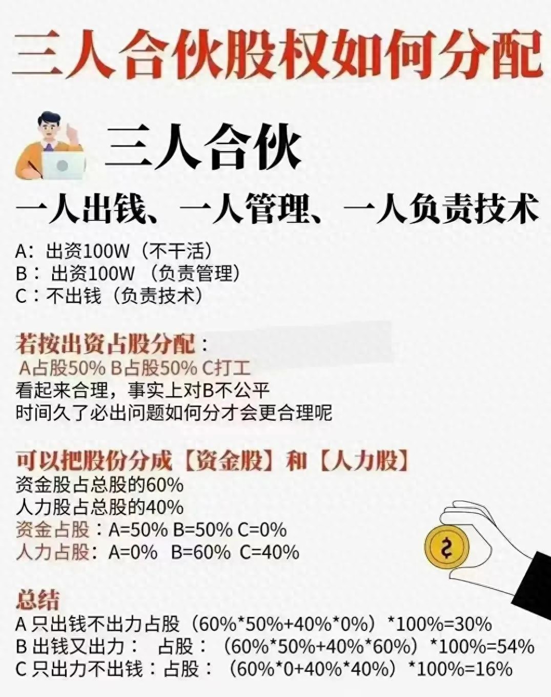 三人合伙股权如何分配,这种算法最没有争议