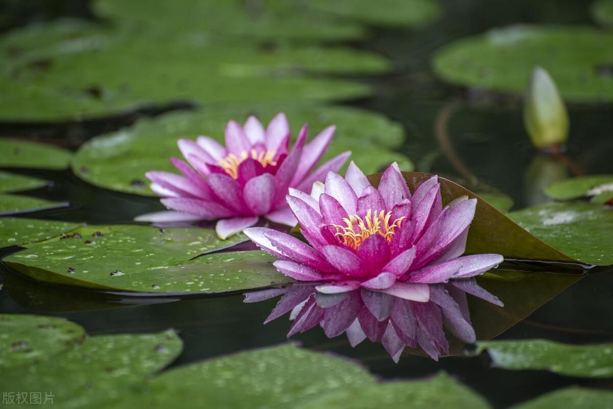 花语:金链花——神圣;睡莲——超脱