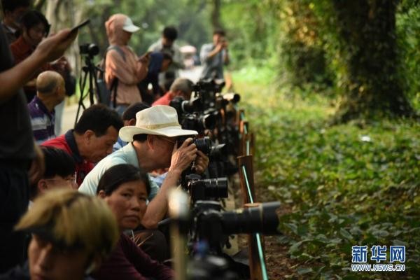 游客正在拍摄萤火虫飞舞。新华网发(王满昌 摄)