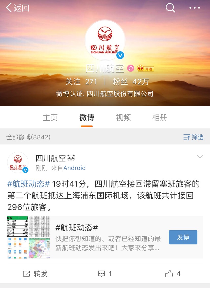 川航第二架飞机顺利接回296名乘客,已抵达上海