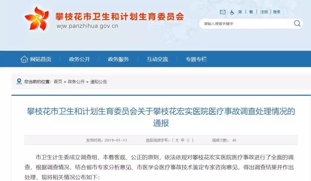 本病例构成一级甲等医疗事故,攀枝花宏实医院承担主要责任,并责令西区卫生计生局对承担主要责任的攀枝花宏实医院及其涉责医务人员作出处理。