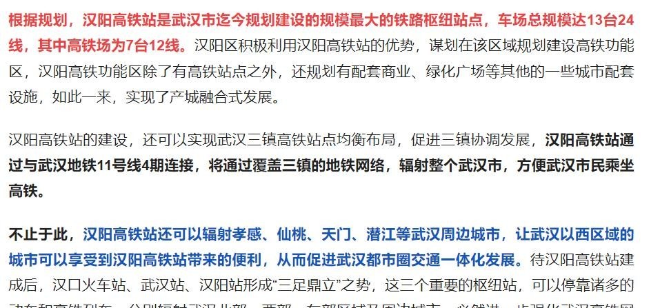 它不仅将大大提升武汉交通枢纽地位,更将为汉阳区经济发展注入强劲动力,这里将成为连接全国交通枢纽,也将成为武汉新经济增长极