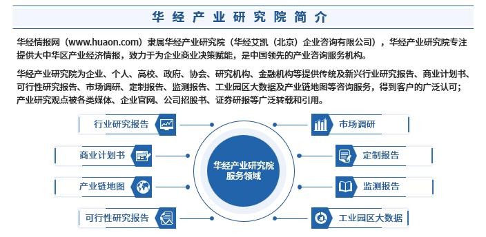 华经情报网隶属于华经产业研究院,专注大中华区产业经济情报及研究,目前主要提供的产品和服务包括传统及新兴行业研究、商业计划书、可行性研究、市场调研、专题报告、定制报告、工业园区大数据、产业链地图等。涵盖文化体育、物流旅游、健康养老、生物医药、能源化工、装备制造、汽车电子等领域,还深入研究智慧城市、智慧生活、智慧制造、新能源、新材料、新消费、新金融、人工智能、“互联网+”等新兴领域。