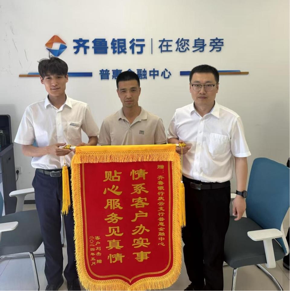 “这50万元抵押贷款太及时了!太感谢齐鲁银行了,真是帮了大忙啊!”近日,齐鲁银行德州庆云支行普惠金融中心收到了优盛商贸销售中心负责人刘杰送来的一面印有“情系客户办实事 贴心服务见真情”的锦旗。