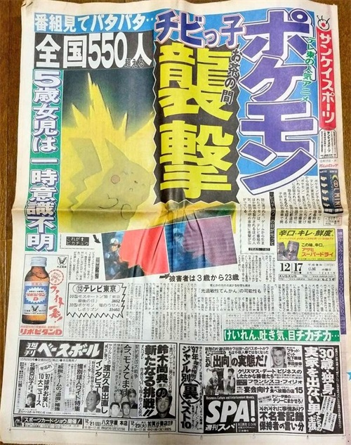 在1997年12月16日18点51分34秒时,曾经出现了日本动漫史上最大的黑历史。当时为了爆炸的震撼感,当皮卡丘电击3D龙的时候发生了爆炸,屏幕开始频繁闪光,结果引起了电视机前的观众光敏感性癫痫症。当时有约为600多名的观众朋友们被送往医院,次日任天堂股票大跌,宝可梦也一度停播。