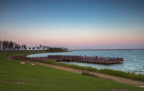 湖岸圆滑整齐,湖体呈浅碟型,湖底平坦,自然环境优美。