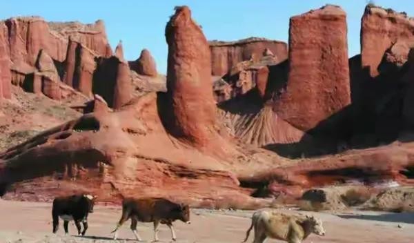 风吹过,令人恐怖的呜咽和犹如鬼哭狼嚎的声音。感觉魔鬼在游荡。偶尔走过的牛羊是魔鬼的食物。偶尔看到的动物骨架是魔鬼在宣誓自己的领地。