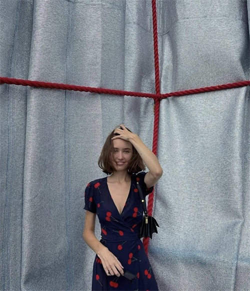 也可以通过时装的色彩,让搭配变得更实用一点,比如搭配粉色的吊带低胸连衣裙,这种裙子很显年轻,不会过分地展现性感,而是要搭配看起来有一种少女感呈现,风格自然也会显得更加随性。