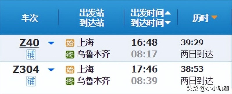 目前,上海至乌鲁木齐每天有2个车次的直达特快列车,即Z40次和Z304次列车。