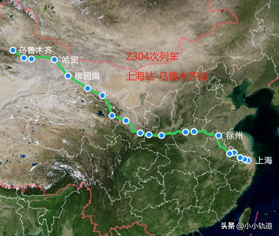 上海到乌鲁木齐直达特快,均速 103kph,Z304次列车耗时约39小时