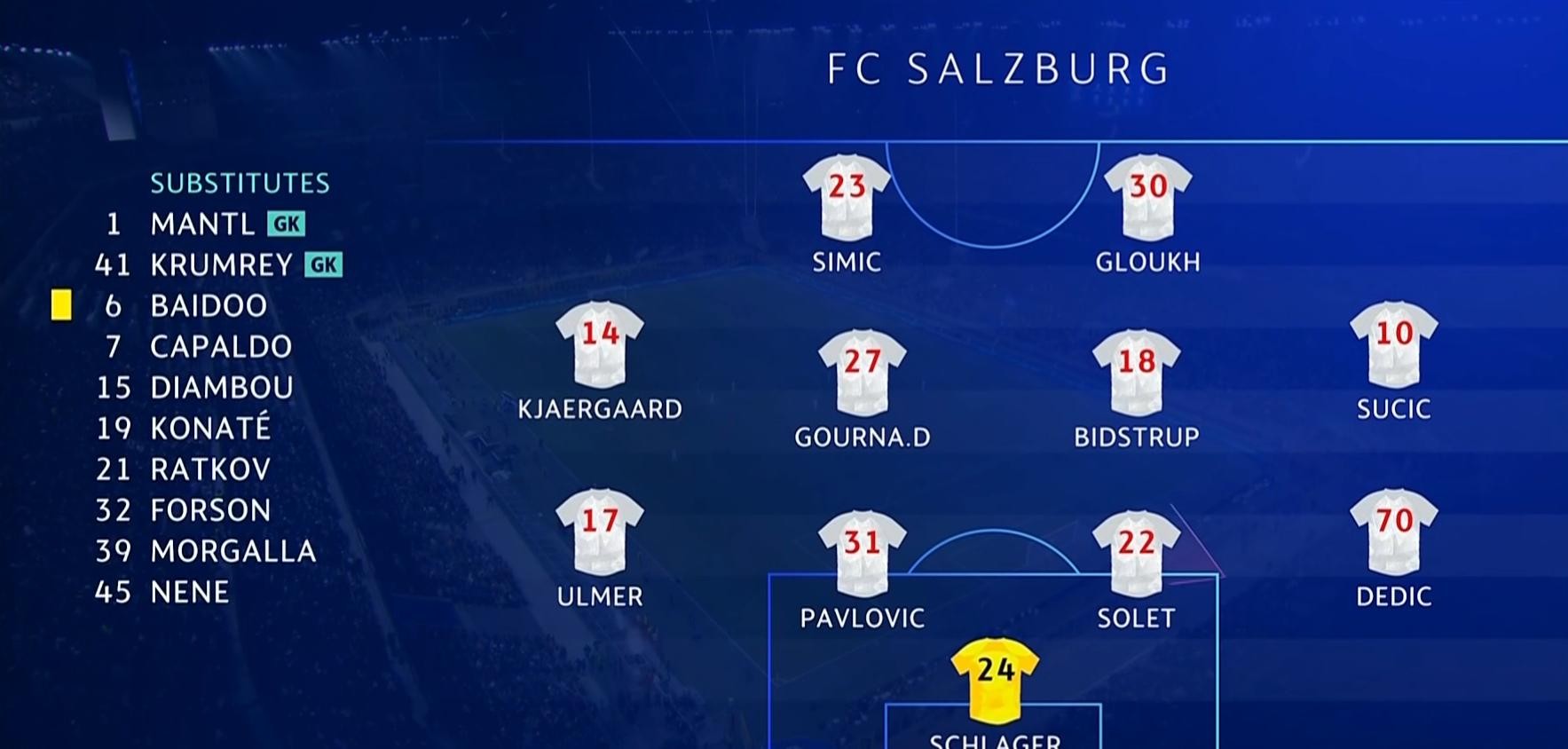 比赛第9分钟,恰尔汉奥卢拦截失误,萨尔茨堡红牛的队员形成了一次进攻机会,好在帕瓦尔和德弗赖回防及时,让对方无功而返。