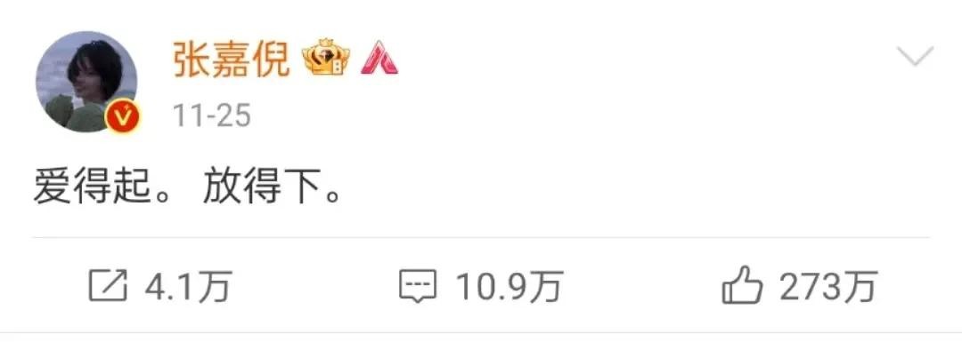 张嘉倪作为娱乐圈一大神颜美女,在感情上都有这种不顺,让广大网友直呼"再也不会相信爱情",难道之前的深情都是装的吗?娱乐圈真的没有真正的爱情了吗?